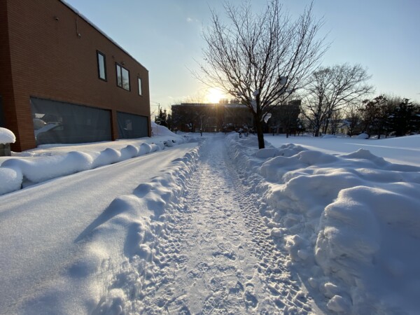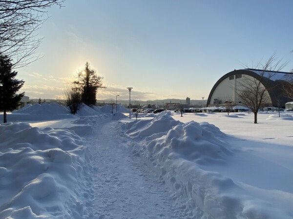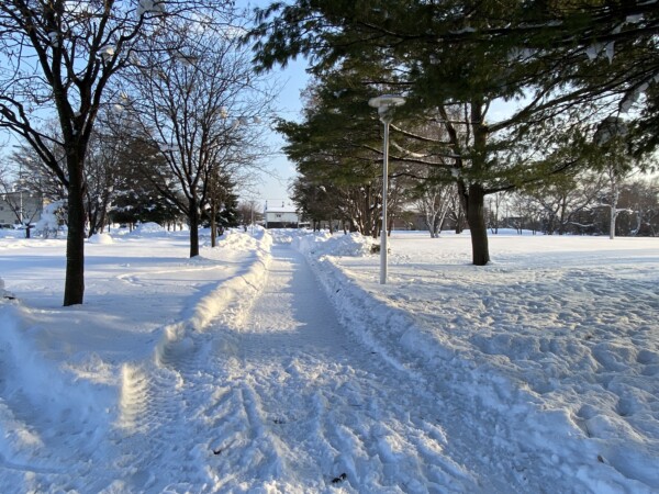 お知らせ 2023年01月12日(木) クリスタルパーク冬の散歩道 クリスタルパーク(旭川市神楽3条7・8丁目)には、 冬の散歩道としてお散歩を楽しめる雪道を造りました。 沢山の方に散歩道として利用されていて、とても嬉しく思います。 散歩道は、クリスタルパーク裏の大雪アリーナ側、横の永隆橋通りへ抜けることができます。 散歩道を歩く際は、頭上の樹木からの落雪等にご注意ください。